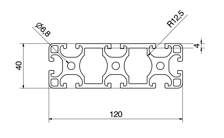 Médium hliníkový profil s rozmerom 40 x 120 mm a šírkou drážky 8 mm