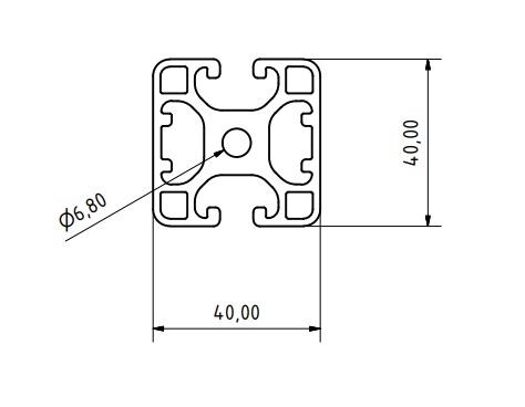 Odľahčený hliníkový profil s rozmerom 40 x 40 mm a dvoma plnými stranami. Šírka drážky je 8 mm