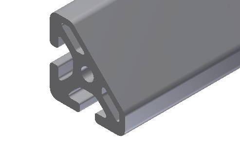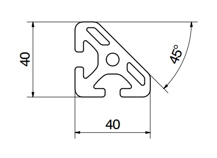 Hliníkový profil s rozmerom 40 x 40 mm a jednou stranou pod uhlom 45°. Šírka drážky je 8 mm