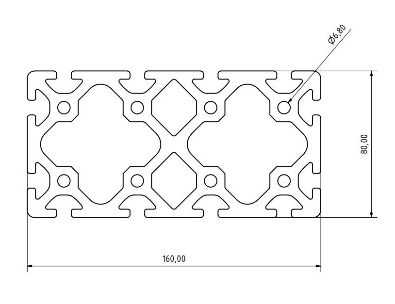 Hliníkový profil s rozmerom 80 x 160 mm a šírkou drážky 8 mm