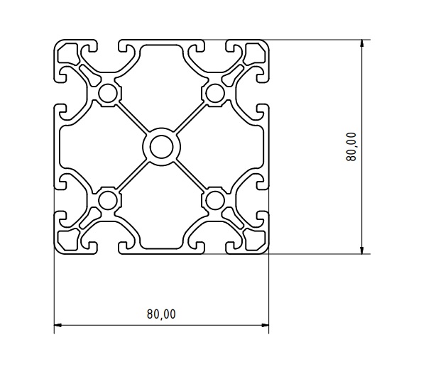 Ekonomický hliníkový profil s rozmerom 80 x 80 mm a šírkou drážky 8 mm