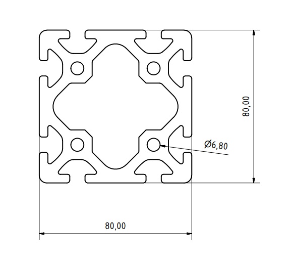 Hliníkový profil s rozmerom 80 x 80 mm a šírkou drážky 8 mm