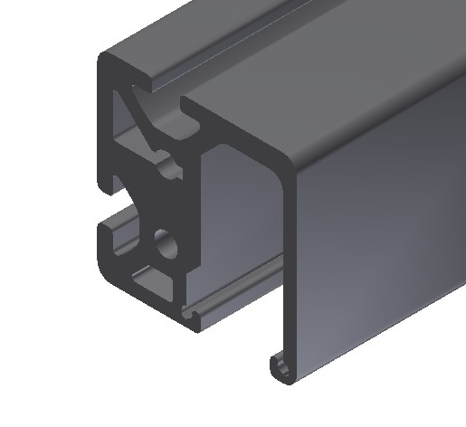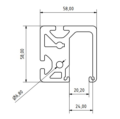 Hliníkový profil pojazdnej kladky s rozmerom 58 x 58 mm a šírkou drážky 8 mm