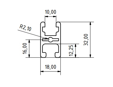 Upínací hliníkový profil s rozmerom 18 x 32 mm a šírkou drážky 8 mm