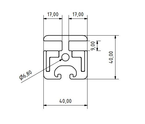 Obojstranný upínací hliníkový profil s rozmerom 40 x 40 mm a šírkou drážky 8 mm