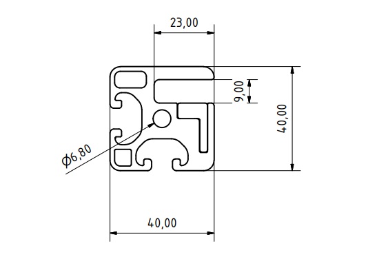 Upínací hliníkový profil s rozmerom 40 x 40 mm a šírkou drážky 8 mm
